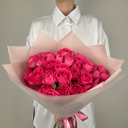 Роза 40 см - 25 шт., Лента атласная - 1 шт., Современная упаковка - 1 шт.Доставка 0₽ от 30-ти минут