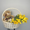 Корзина Гигант (от 35 см) - 1;Мишка 50 см - 1;Конфеты "Ferrero Rocher" 200г. - 1;Конфеты Ferrero Rocher 125г - 2;Нарцисс - 9;Тюльпан - 51;