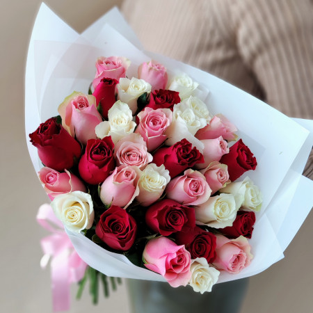 Букет из 35 фирменных роз микс