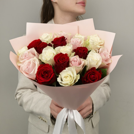 Букет из 19 розовых роз 40 см